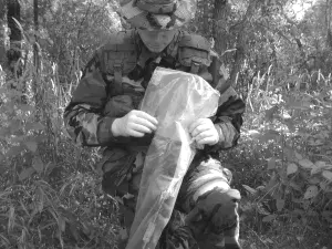 Убедитесь, что оружие или оборудование имеют комнатную температуру и сухое. Если ремень, деревянные ручки или цевьё оружия мокрое, снимите их с оружия.