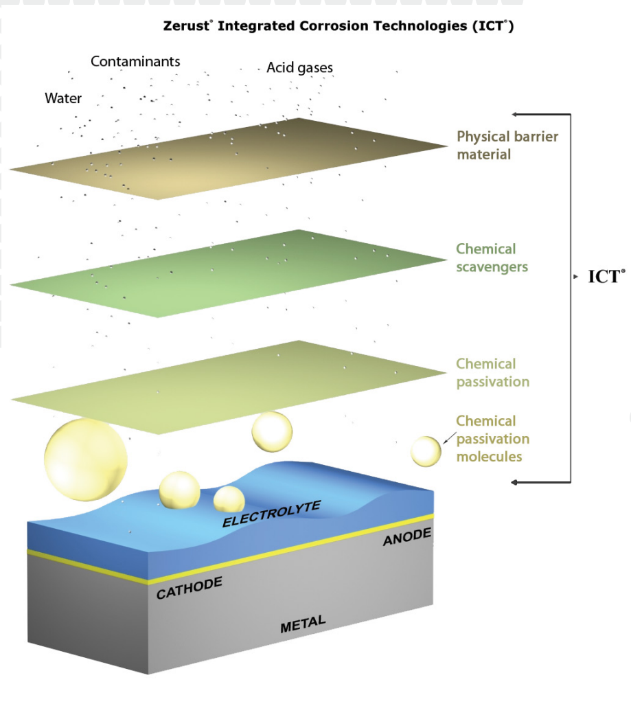 Коррозия– это естественный процесс, который негативно влияет на металлы, вызывая ухудшение, ослабление и потерю стоимости. VCI предлагает передовое решение за счет включения в свой состав технологии летучих ингибиторов.