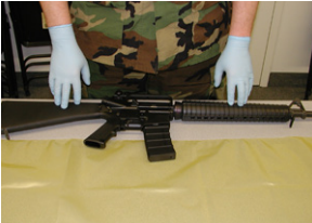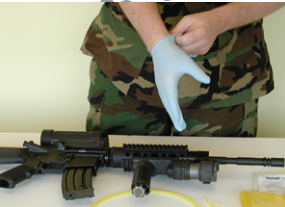 При работе с оружием надевать чистые и сухие перчатки, чтобы защитить его от следов пальцев, вызывающих коррозию. Произведите чистку оружие или оборудование, как вы обычно это делаете. Дополнительная обработка оружием маслом не обязательна.